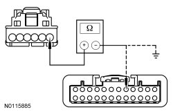 - Measure the resistance between driver heated seat switch C2400-4, circuit GD115 (BK/GY), harness side and ground.