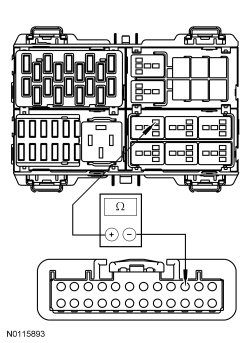 - Measure the resistance between driver heated seat relay socket pin 2, circuit CHS02 (YE/BU), harness side and ground.