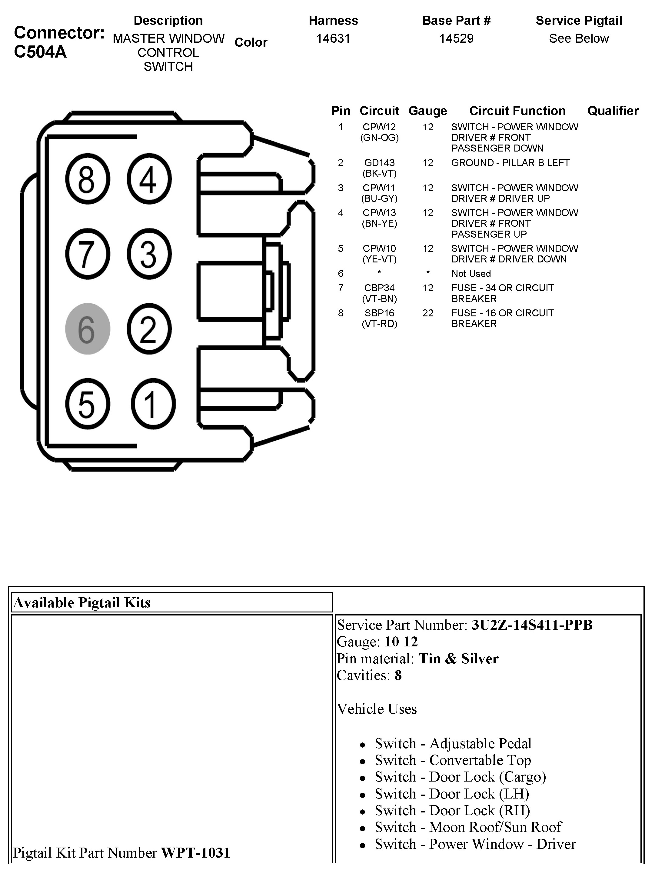 C504A Master Window Control Switch