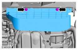 3. Remove the 2 bolts and accessory drive belt splash shield.