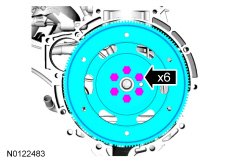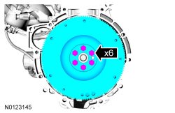 Remove and discard the 6 clutch pressure plate retaining bolts, remove the clutch disc and pressure plate.