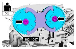 Install the 2 camshaft phaser and sprocket, bolts and the VCT (Variable Camshaft Timing) Alignment Tool.
