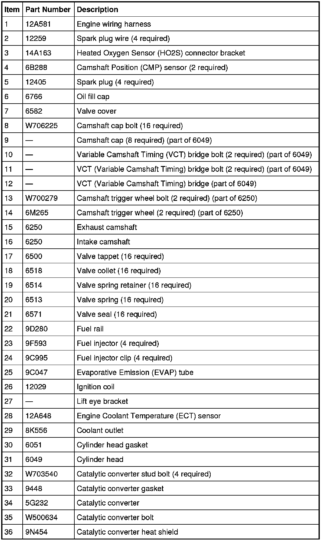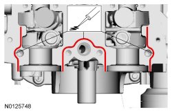 40. NOTE: The VCT (Variable Camshaft Timing) bridge must be installed within 5 minutes of applying the gasket maker to the cylinder head.