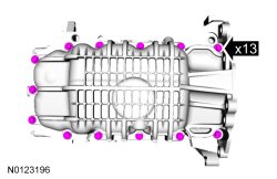 - Stage 1: Tighten bolts 1 through 13 to 10 Nm (89 lb-in).