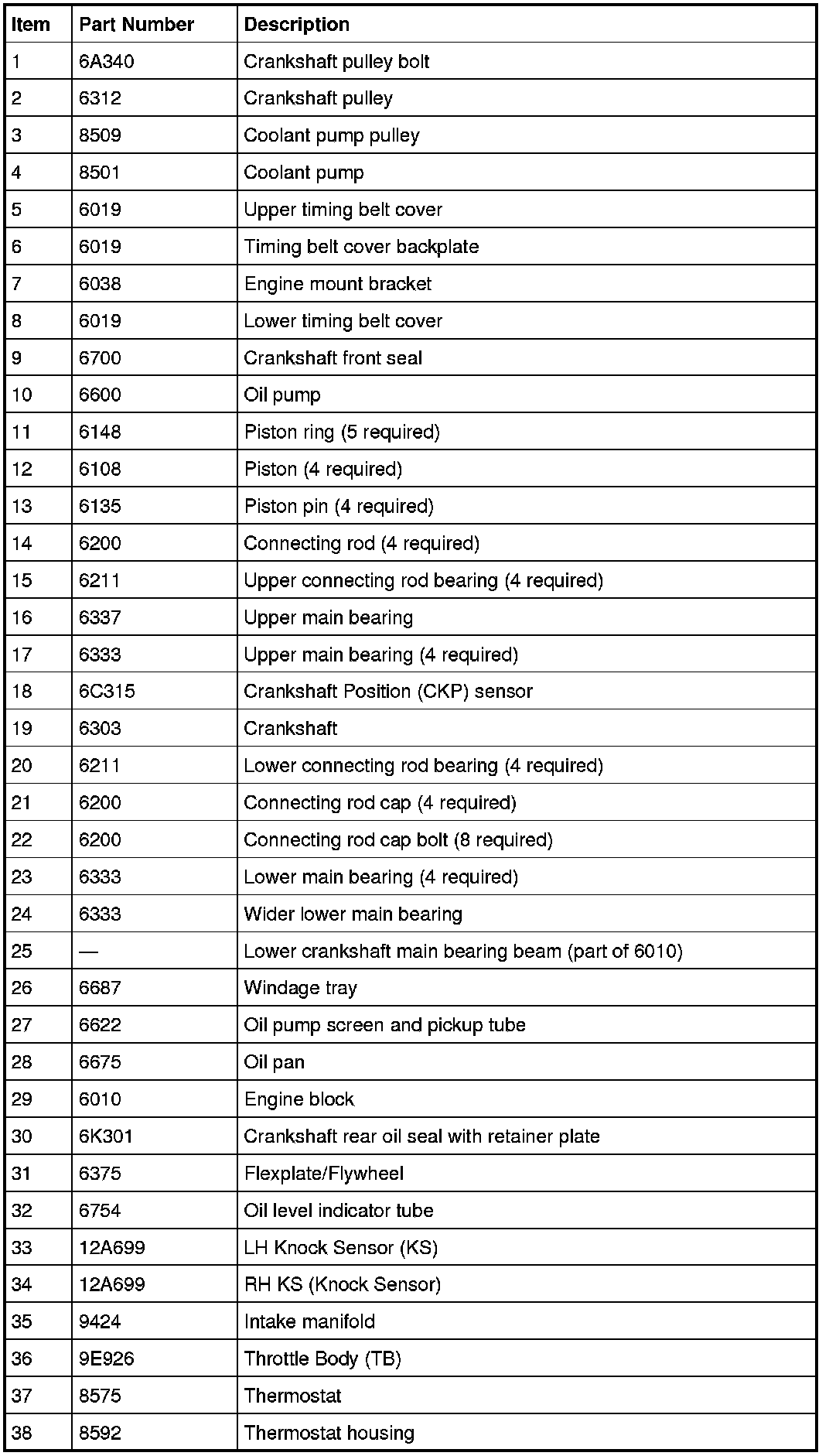 NOTE: Assembly of the engine requires various inspections/measurements of the engine components (engine block, crankshaft, connecting rods, pistons and piston rings). These inspections/measurements will aid in determining if the engine components will require replacement.