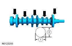 1. Measure each of the crankshaft main bearing journal diameters in at least 2 directions and record the smallest diameter for each journal.