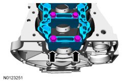 10. NOTE: The main bearing beam has 2 arrows pointing towards the front of engine for correct orientation for reassembly.
