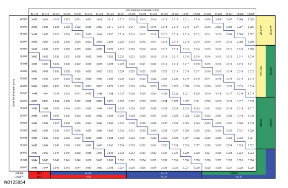 9. Using the chart, select the correct connecting rod bearings for each crankshaft connecting rod journal.