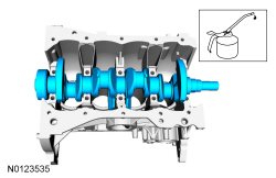 12. NOTE: If reusing the crankshaft main bearings, install them in their original positions and orientation as noted during disassembly.