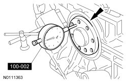 - Move the crankshaft to the front of the cylinder block. Note and record the crankshaft end play.