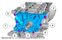 22. Install a new gasket, the oil pump and the 8 bolts in their original position and tighten in sequence shown in 2 stages.