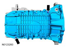 NOTE: If the oil pan is not secured within 5 minutes of sealant application, the sealant must be removed and the sealing area cleaned with metal surface prep. Allow to dry until there is no sign of wetness, or 5 minutes, whichever is longer. Failure to follow this procedure can cause future oil leakage.