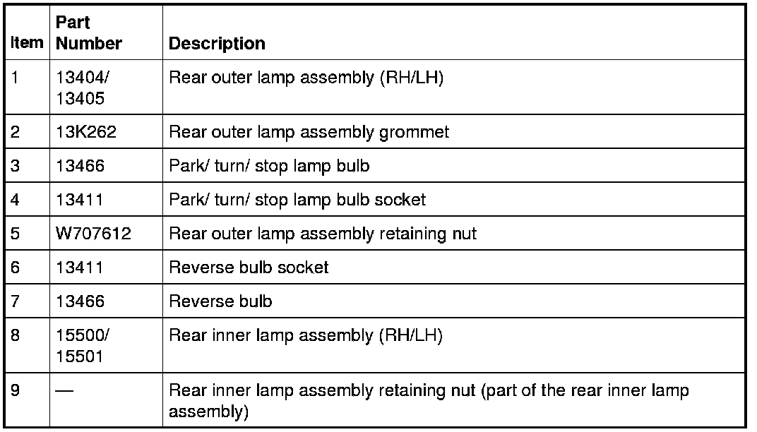 1. Remove the rear outer lamp assembly retaining nut.