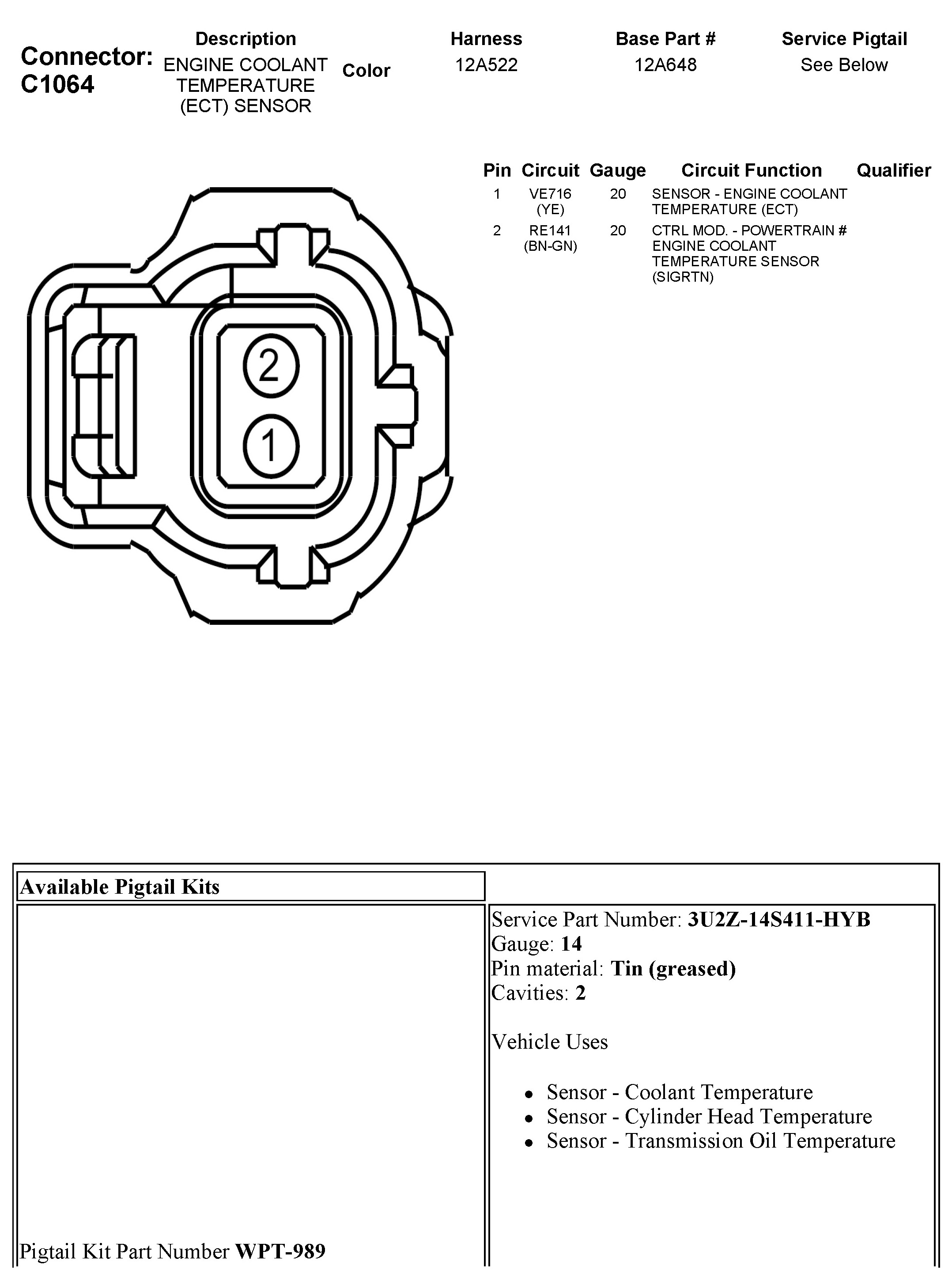Coolant Temperature Sensor/Switch (For Computer): Diagrams