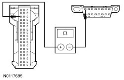 - Measure the resistance between the APIM (Accessory Protocol Interface Module) C2383-17, circuit VDB07 (VT/OG), harness side and the DLC (Data Link Connector) C251-9, circuit VDB07 (VT/OG), harness side.
