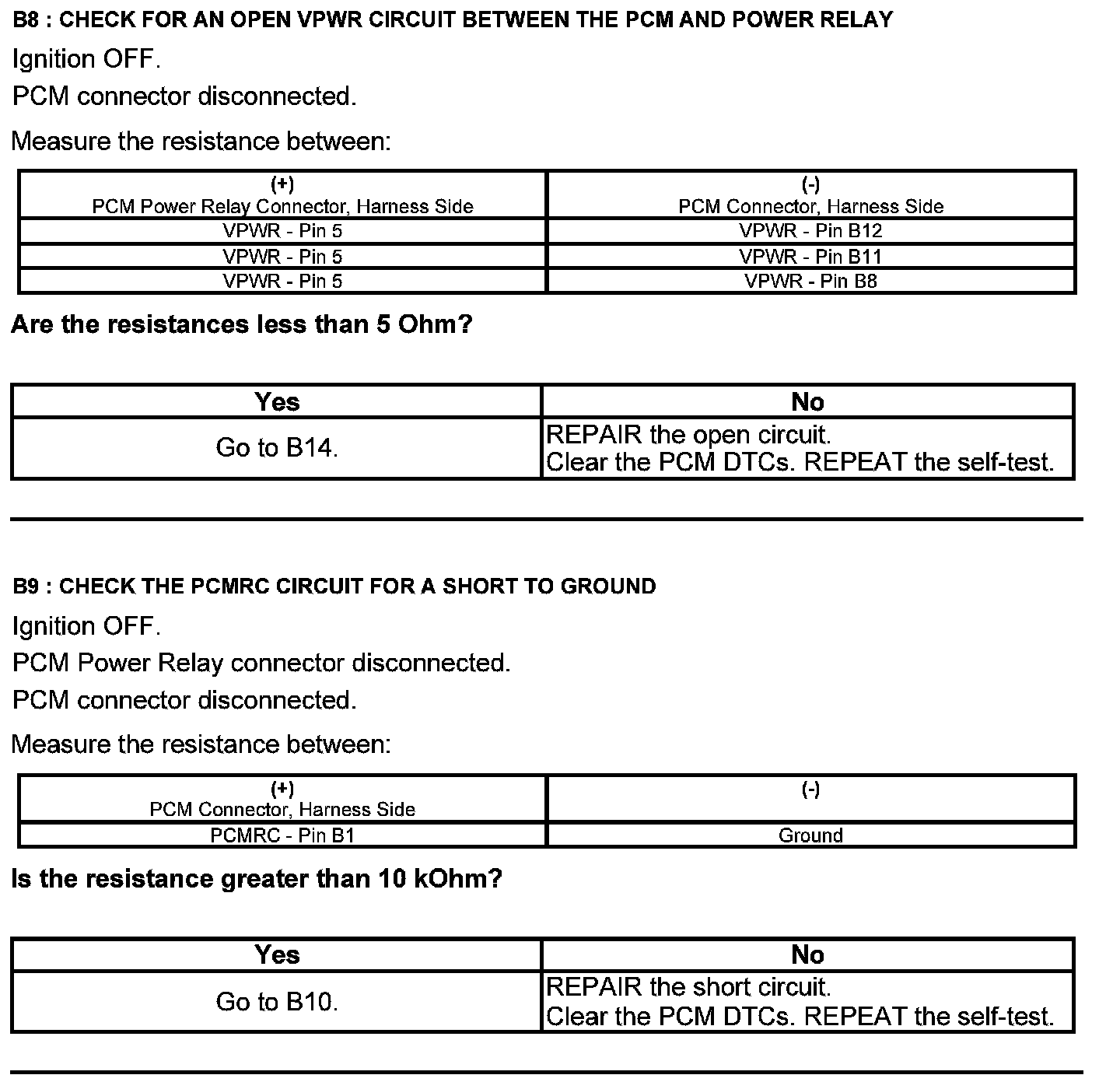 Test B: Powertrain Control Module (PCM) Power Relay