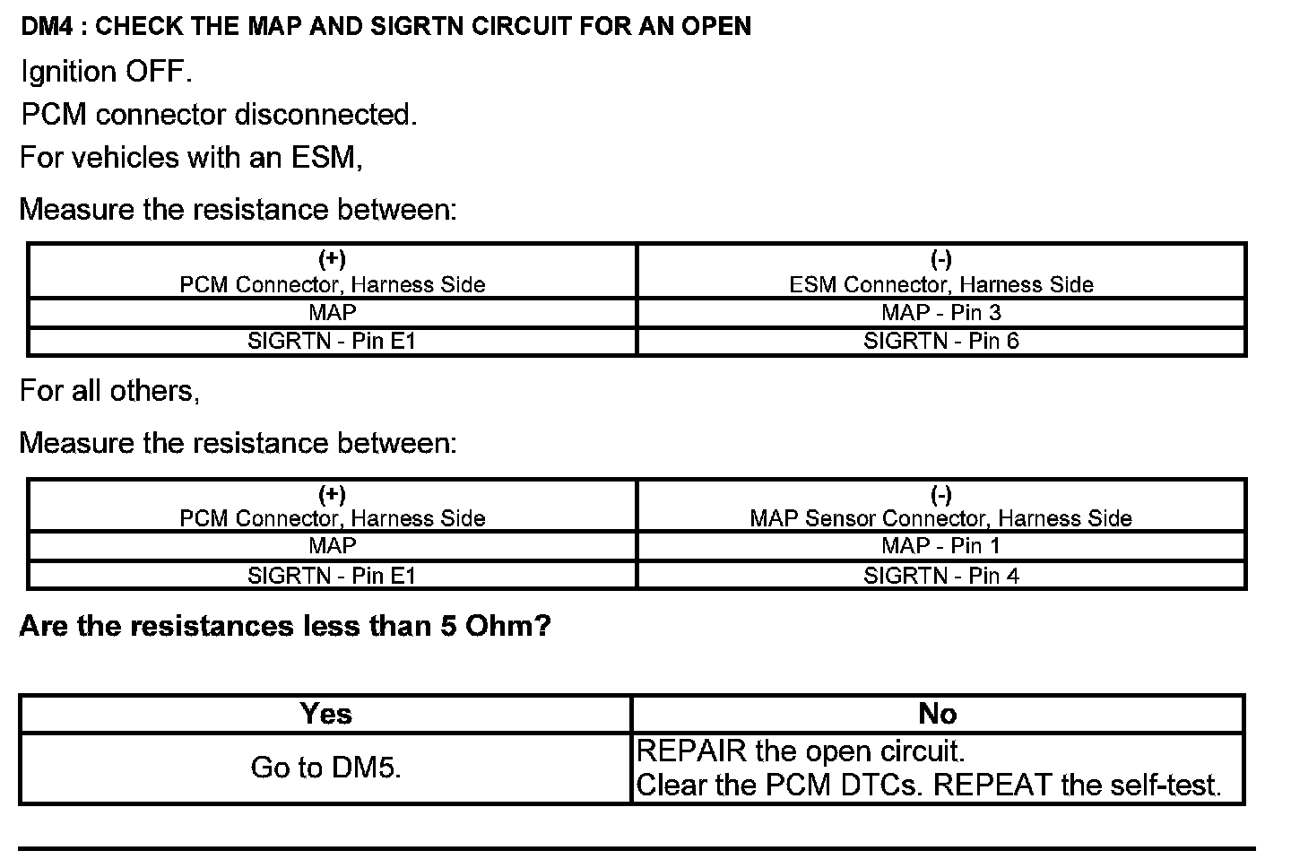 Test DM: Manifold Absolute Pressure (MAP) Sensor