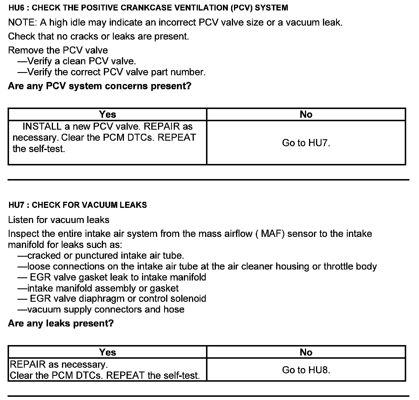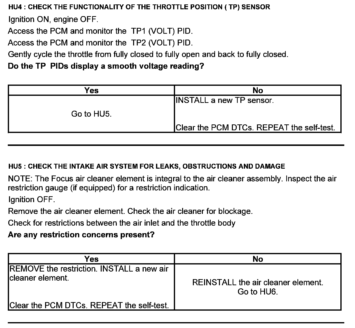 Test HU: Intake Air Systems