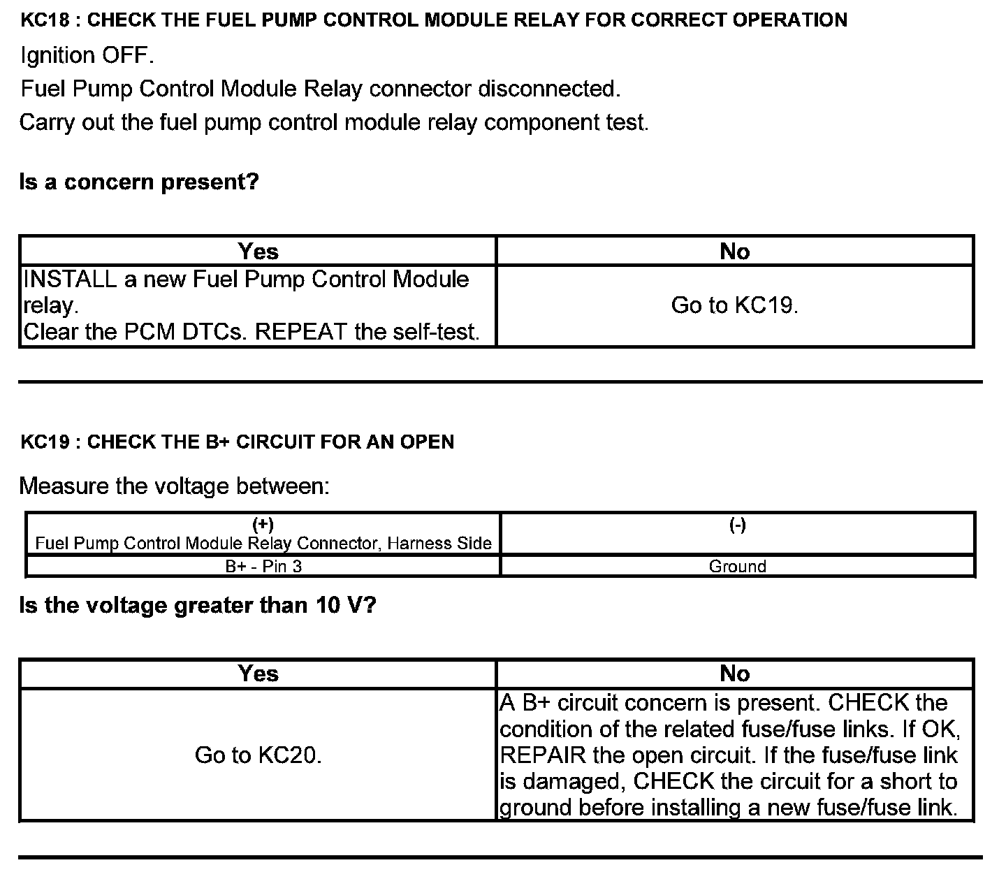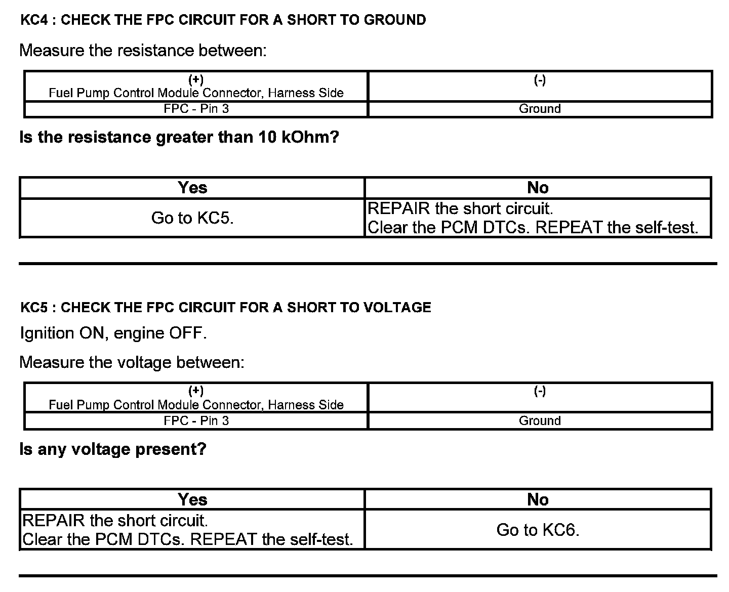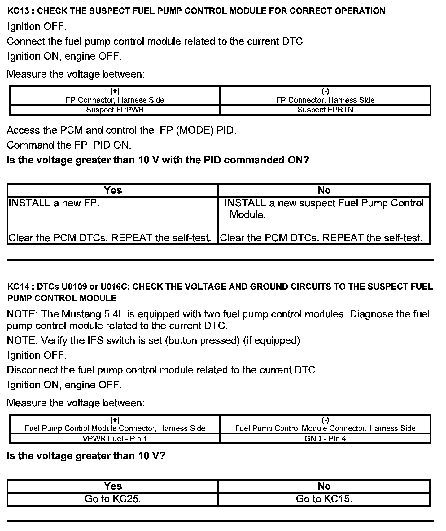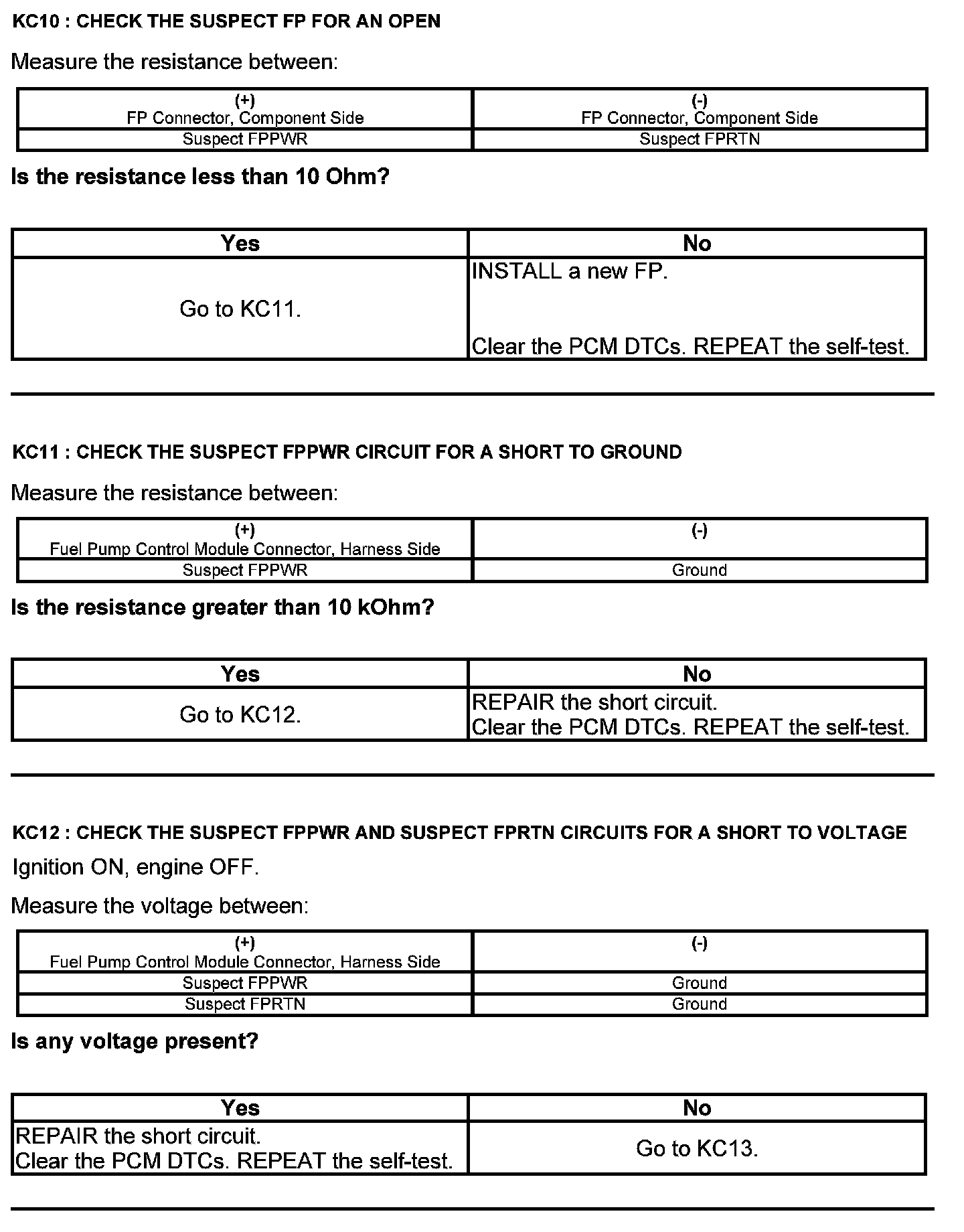 Test KC: Fuel Pump Control Module