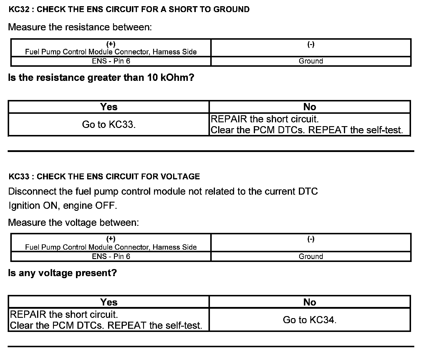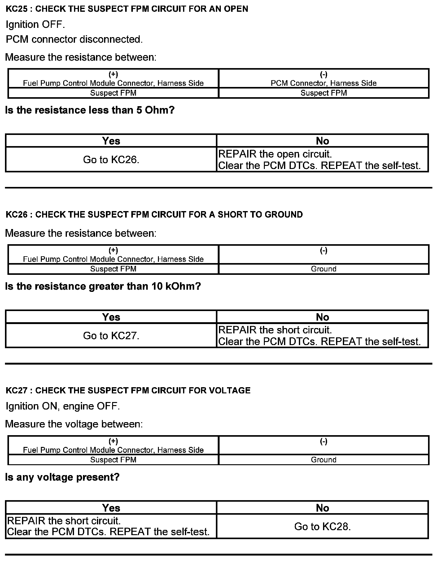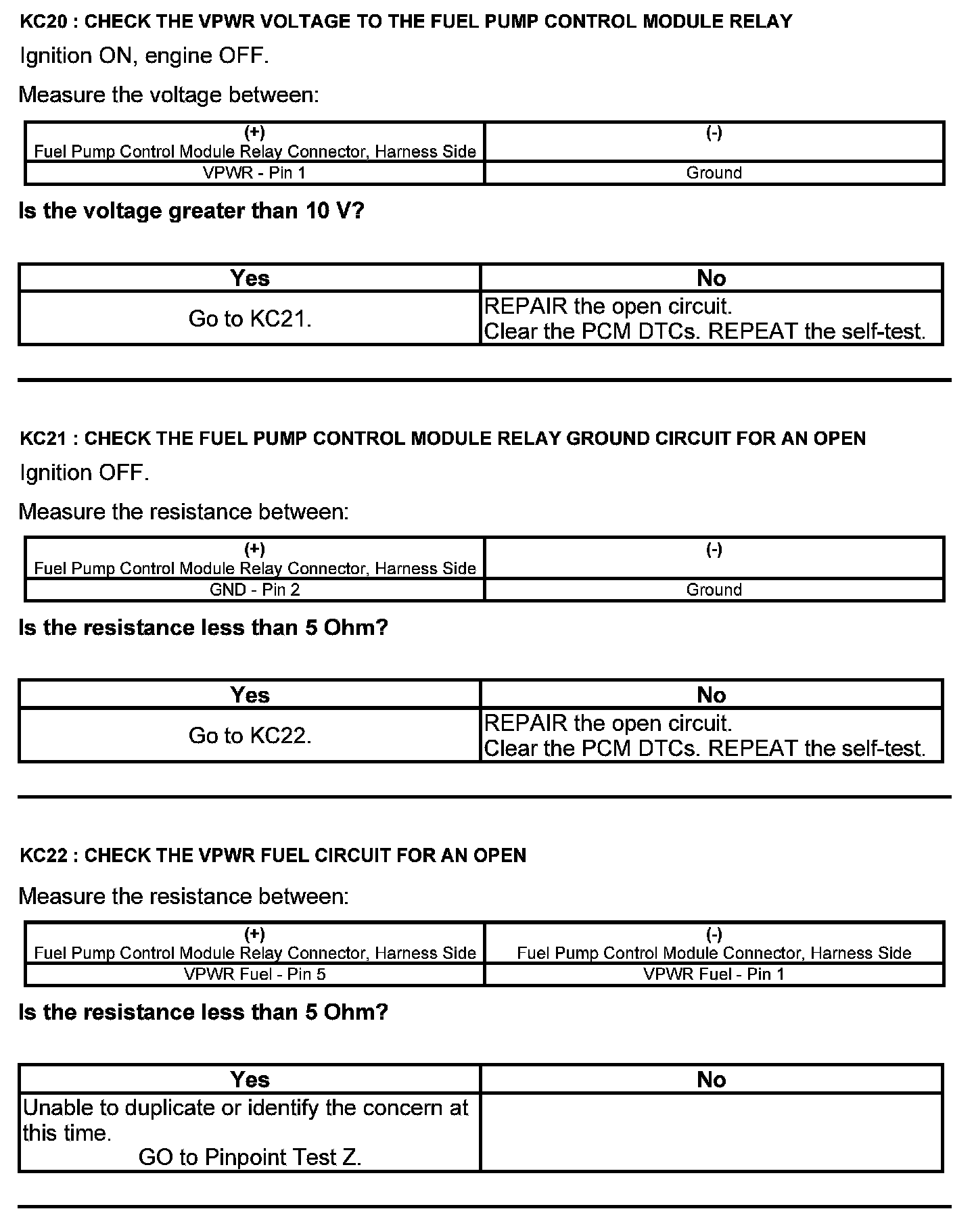 Test KC: Fuel Pump Control Module