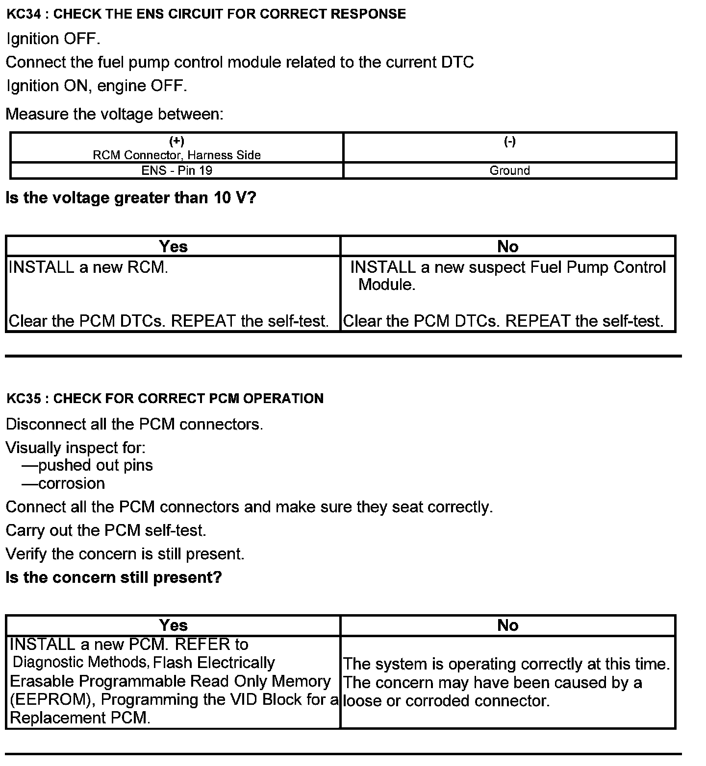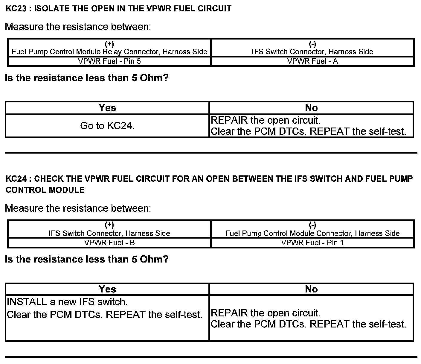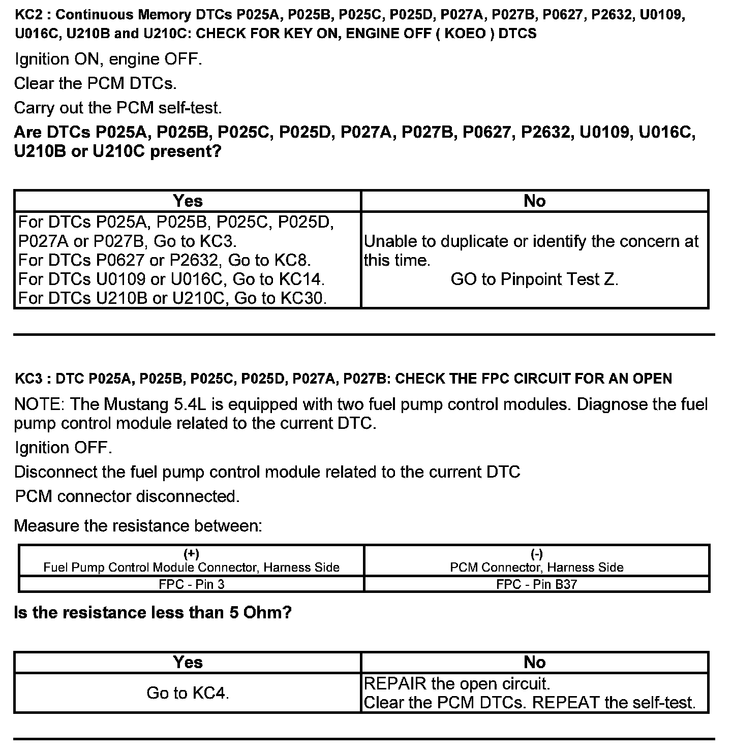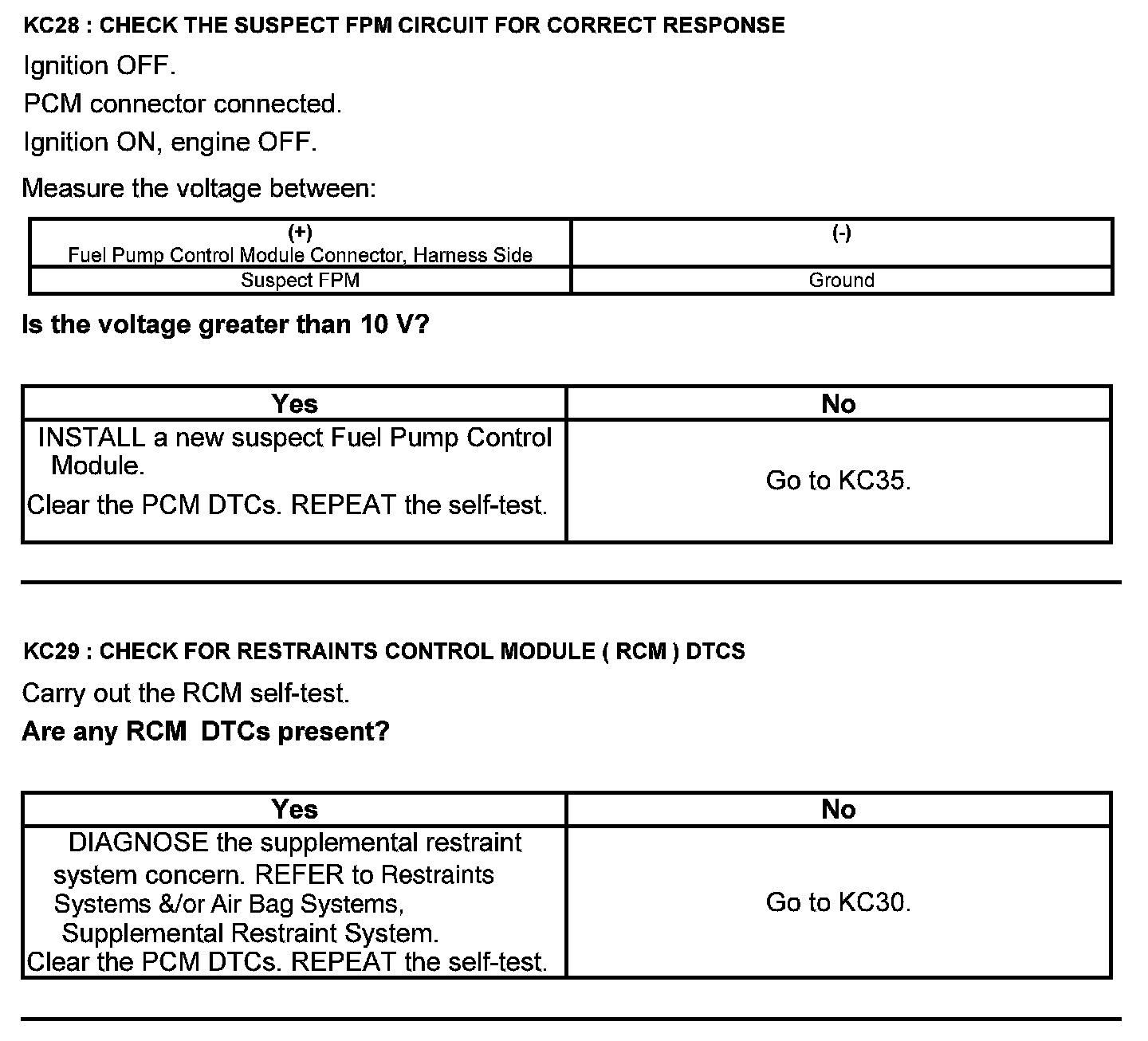 Test KC: Fuel Pump Control Module