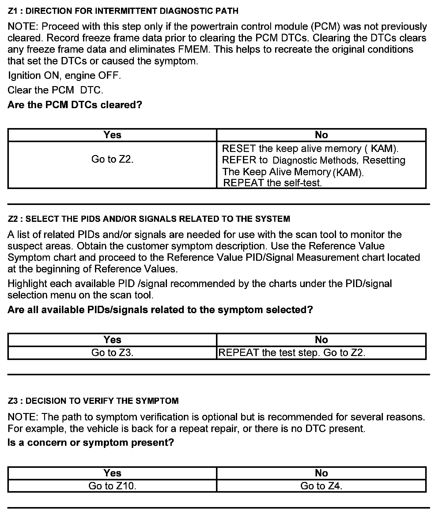Test Z: Intermittent