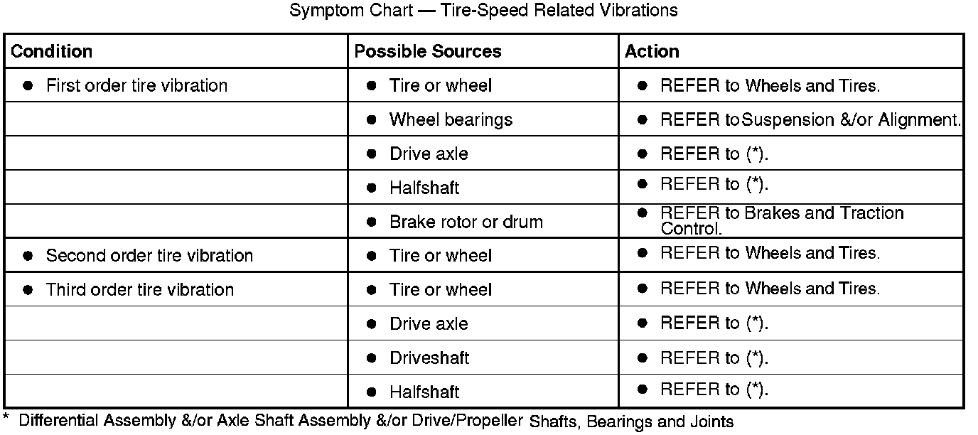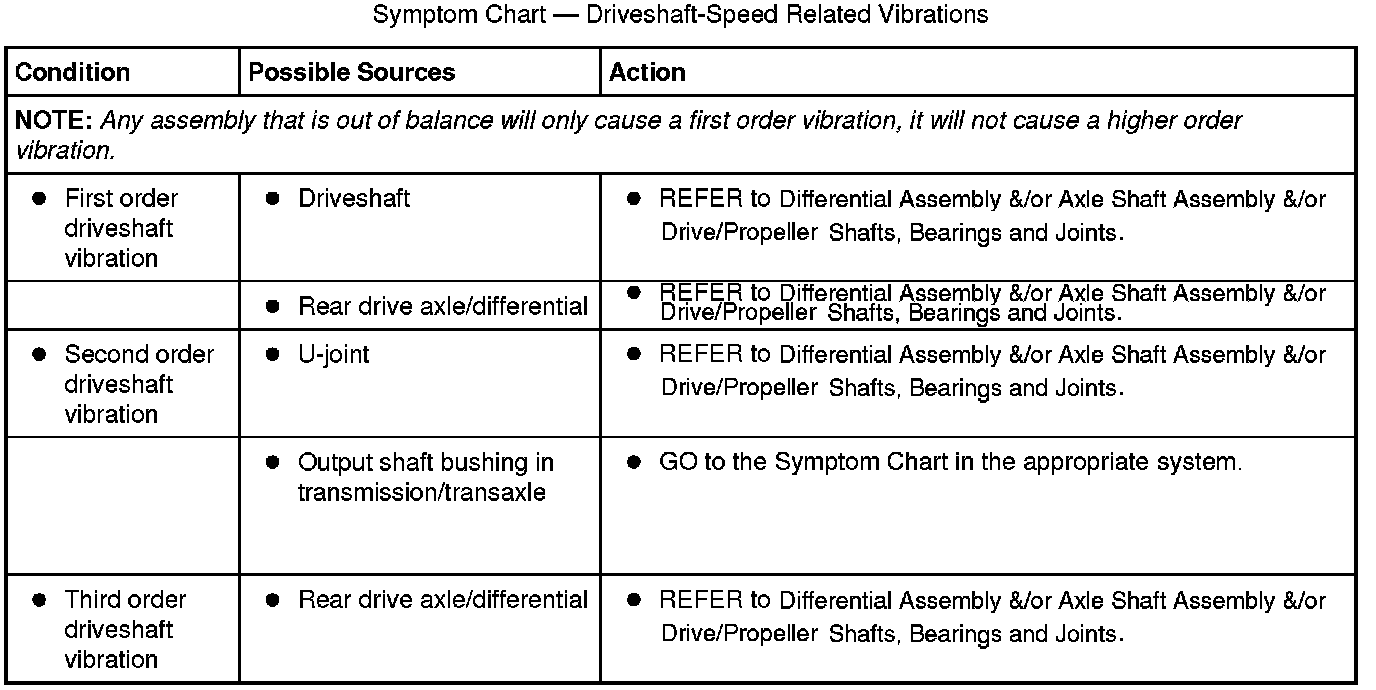 Symptom Chart - Driveshaft-Speed Related Vibrations