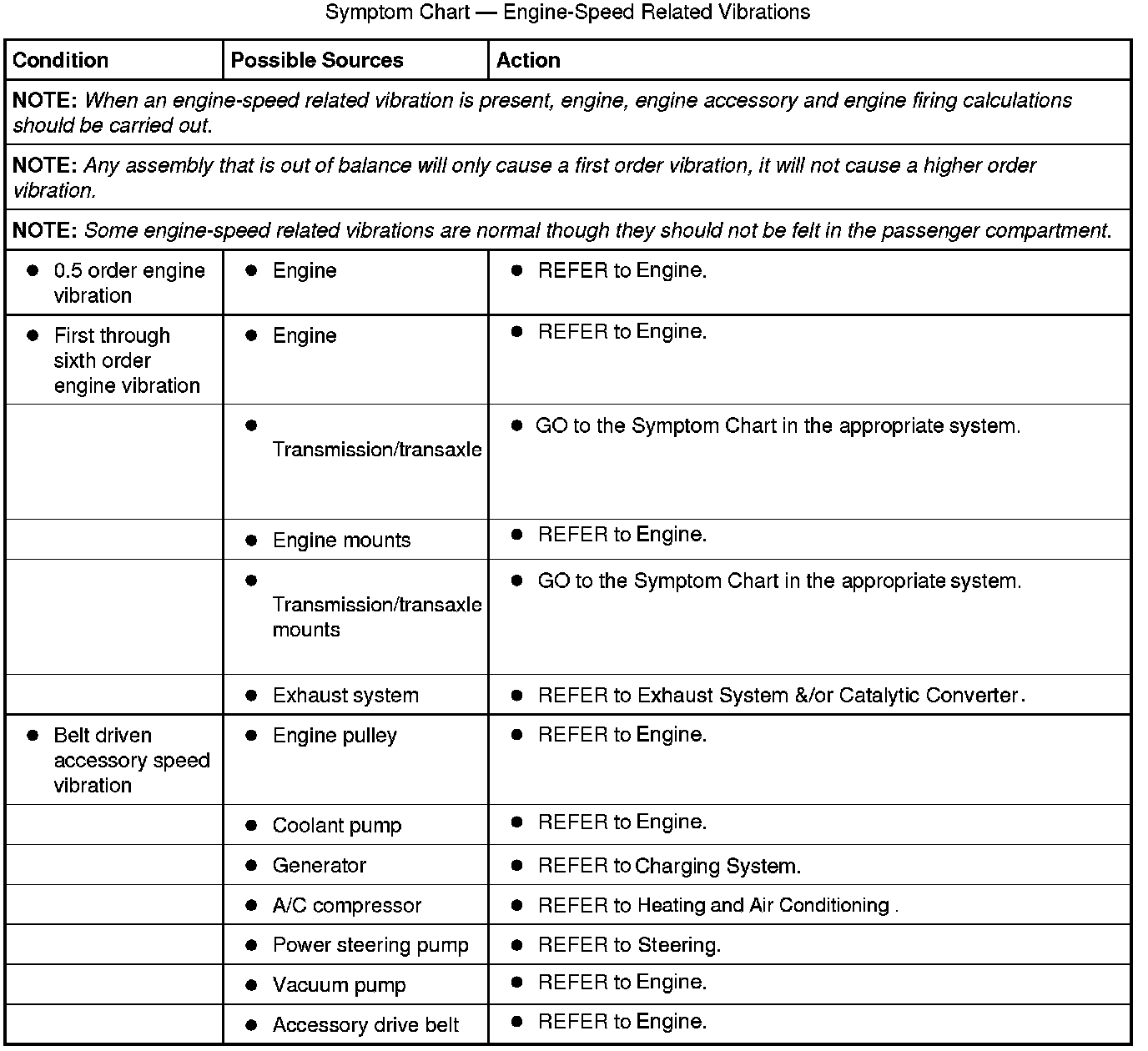 Symptom Chart - Engine-Speed Related Vibrations