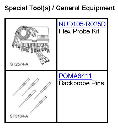 - This step directs accessing circuits using a backprobe method. Use the special backprobe tool specified in the tool list. Do not force test leads or other probes into connectors. Adequate care must be exercised to avoid connector terminal damage while ensuring that good electrical contact is made with the circuit terminal. Failure to follow these instructions may cause damage to wiring, terminals, or connectors and subsequent electrical faults.