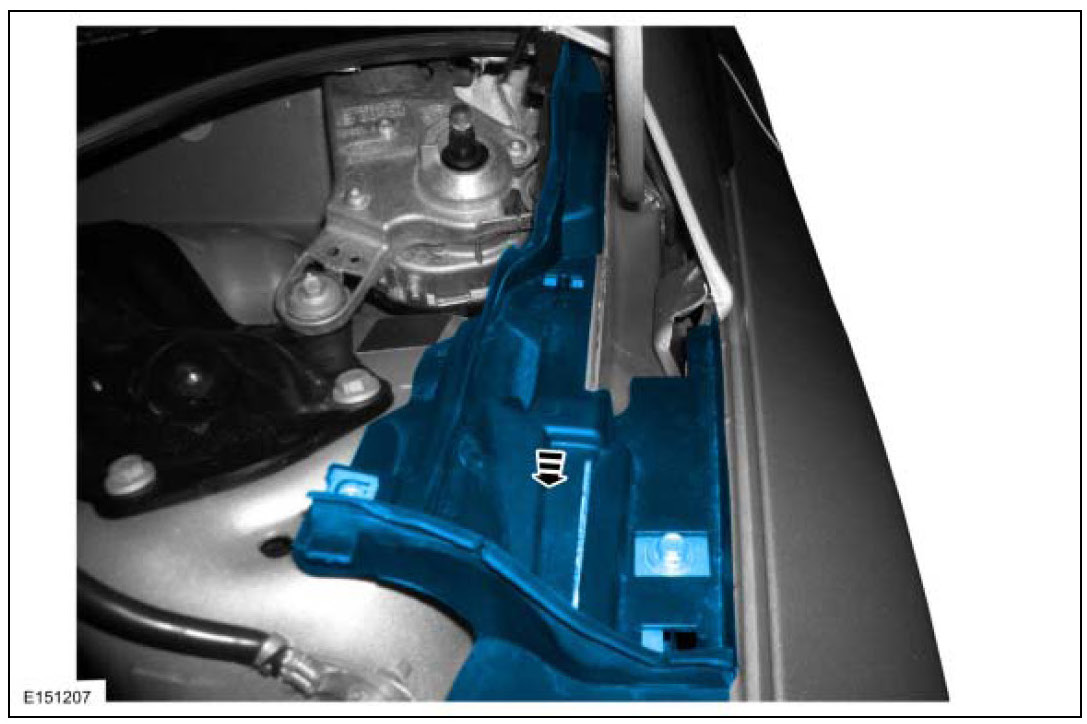 16. Refer to: Cowl Panel Grille (501-02 Front End Body Panels, Removal and Installation).