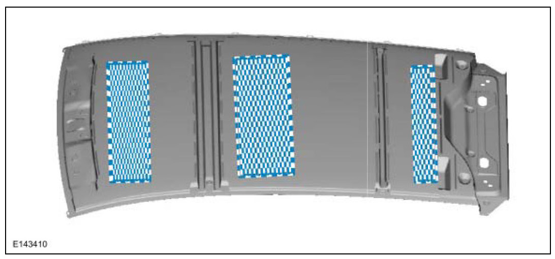 NOTE: The following illustration serves as a reference to indicate mastic patch (butyl) locations. Additional insulators and sound deadeners are used beyond those indicated in the illustration.