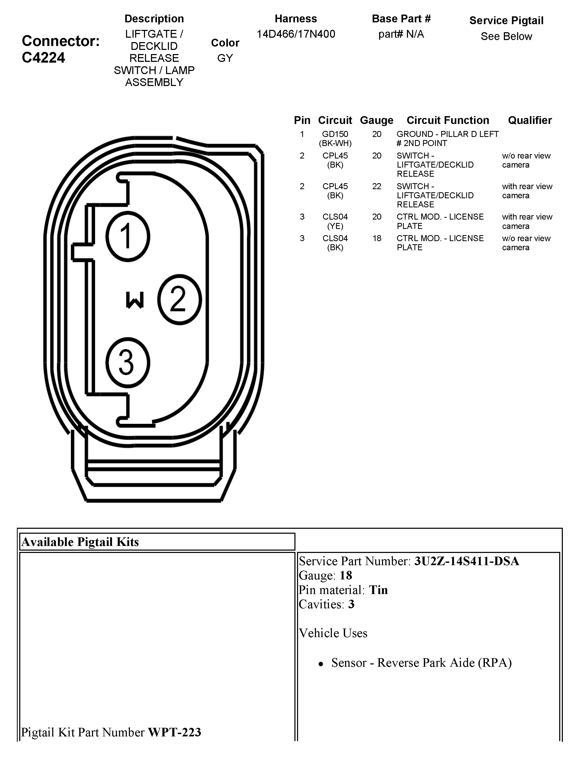 Power Trunk / Liftgate Lock Switch