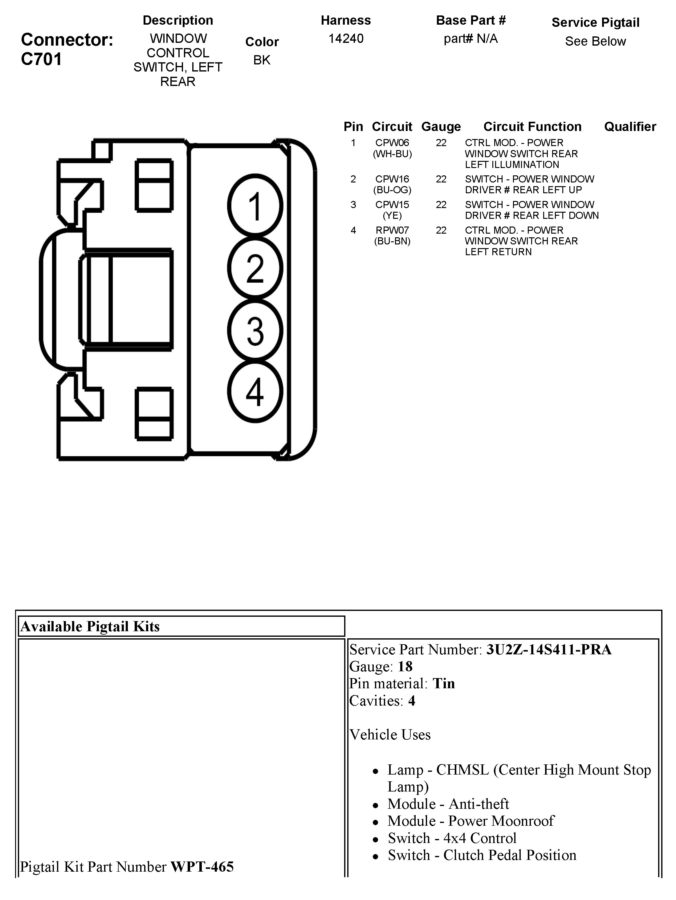 C701 Window Control Switch, Left Rear