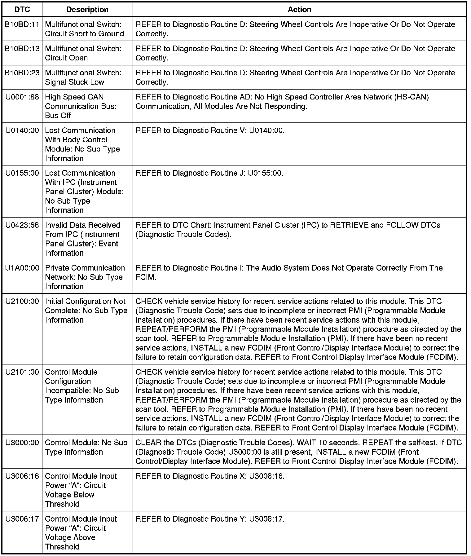 DTC Chart: Front Control/Display Interface Module (FCDIM ) - Base