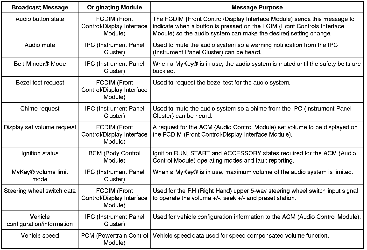 Module Network Input Messages - ACM (Audio Control Module)