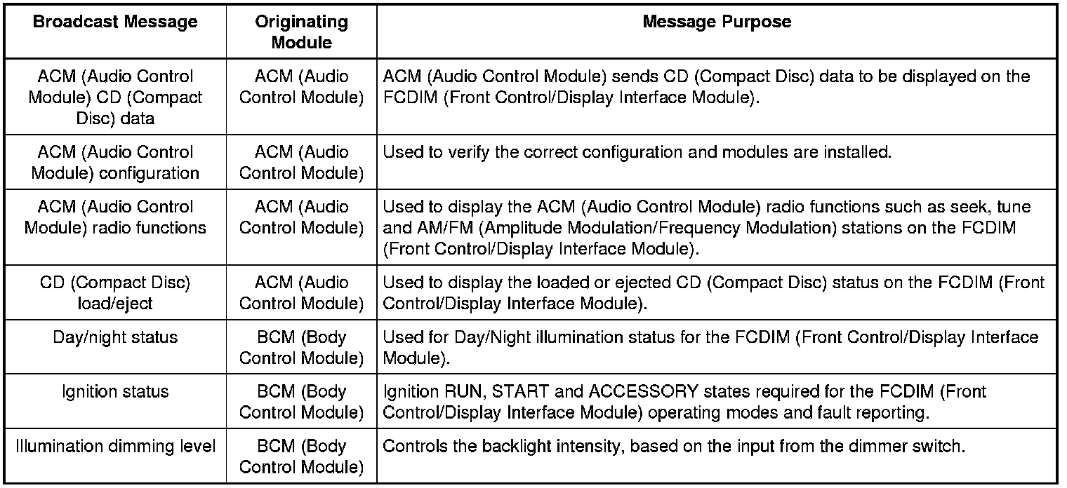 Module Network Input Messages - FCDIM (Front Control/Display Interface Module)