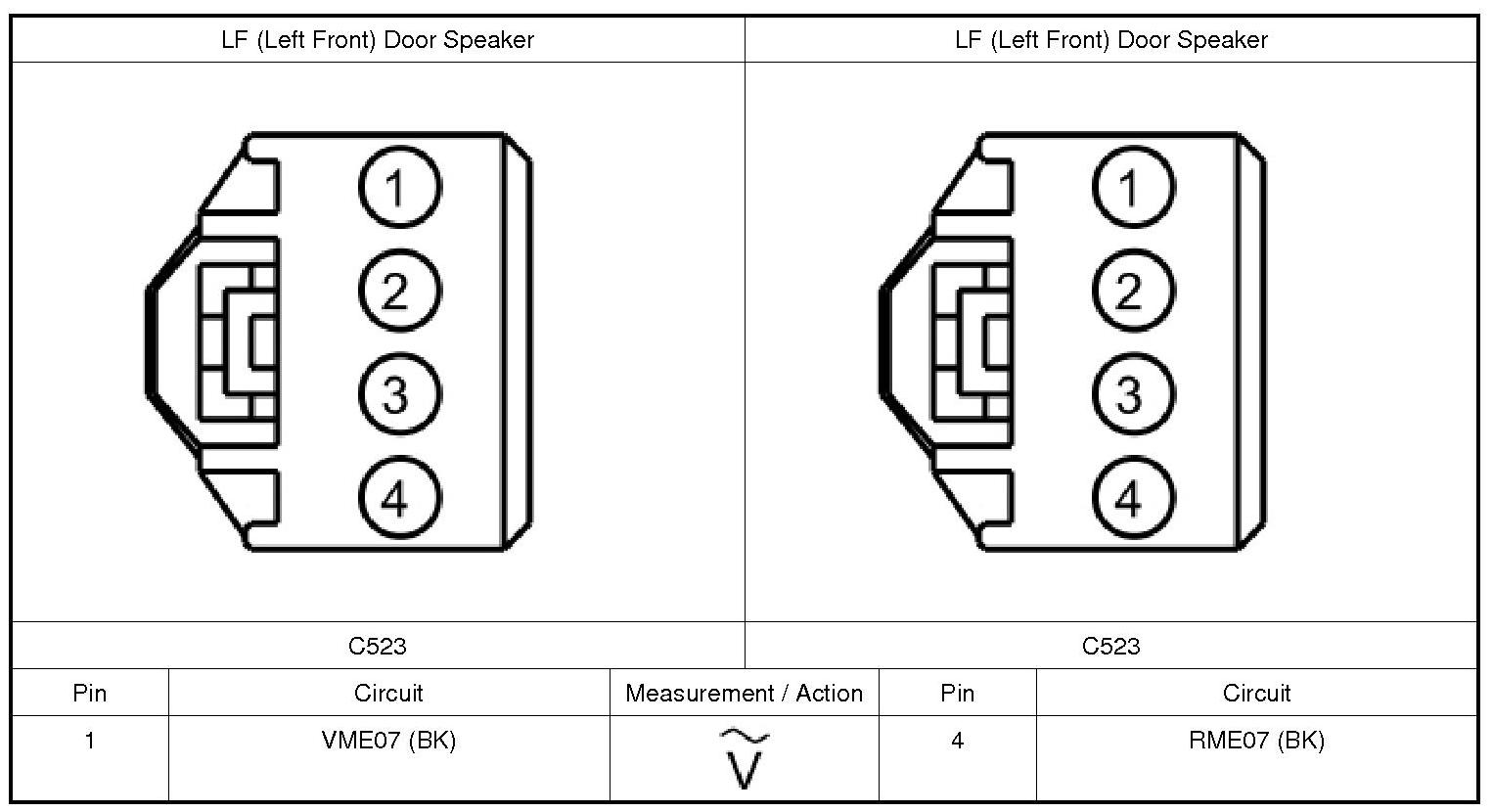 4. CHECK THE AUDIO CIRCUITS TO THE LF (Left Front) DOOR SPEAKER FOR AN OPEN