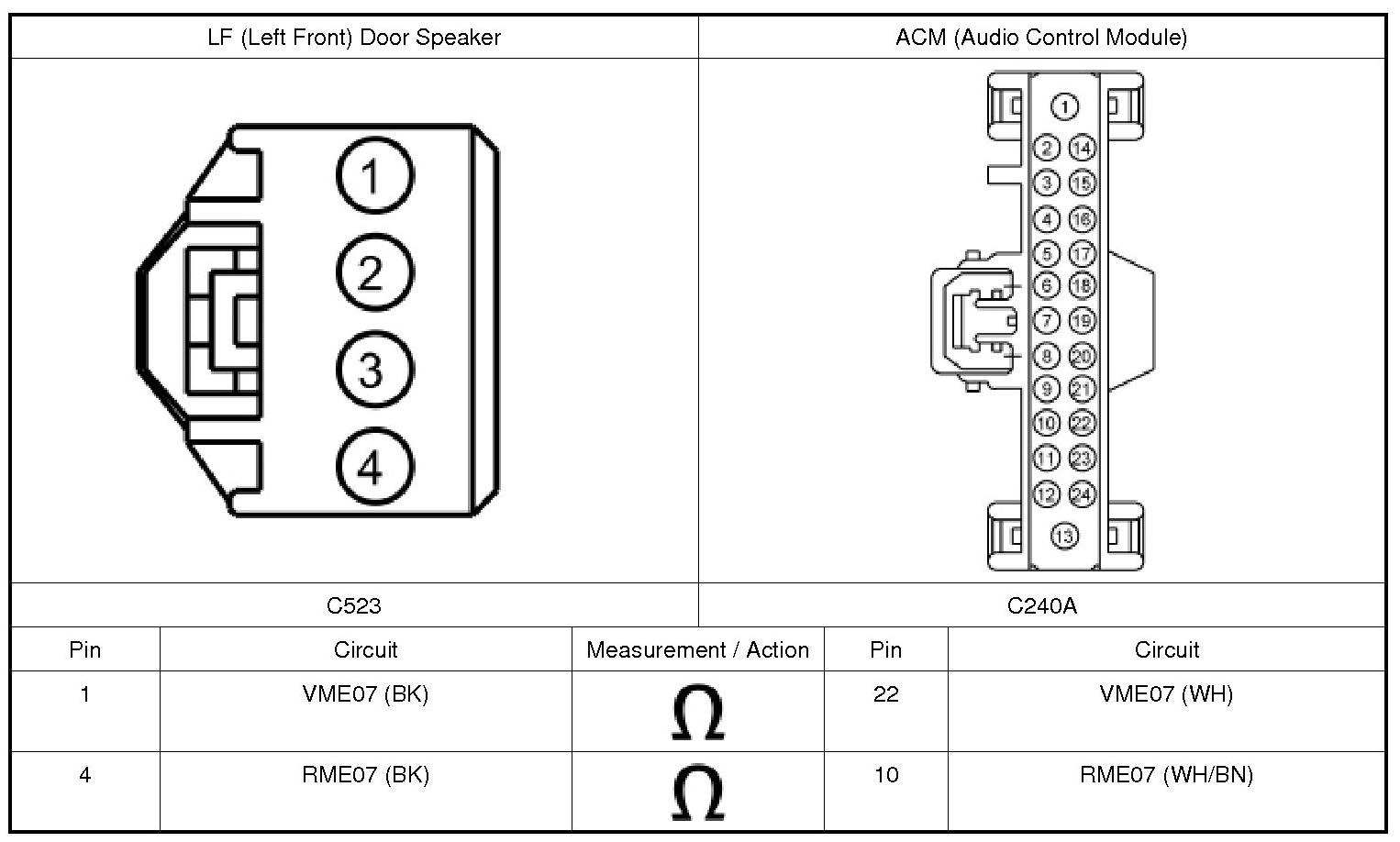 3. CHECK THE AUDIO CIRCUITS TO THE LF (Left Front) DOOR SPEAKER FOR A SHORT TO GROUND