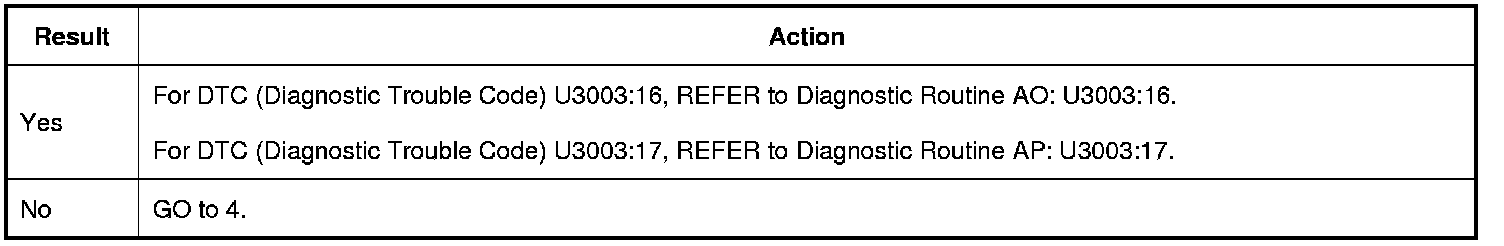 Is DTC (Diagnostic Trouble Code) U3003:16 or DTC (Diagnostic Trouble Code) U3003:17 recorded?
