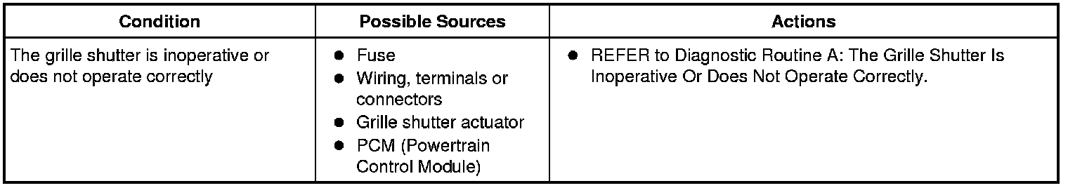 Symptom Chart: Grille Shutter