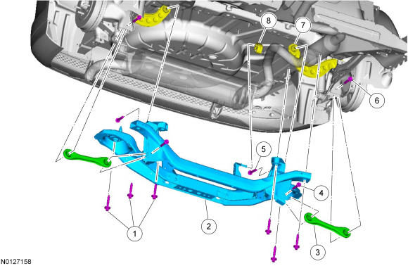 8. Detach the exhaust system from the crossmember exhaust hanger isolator.