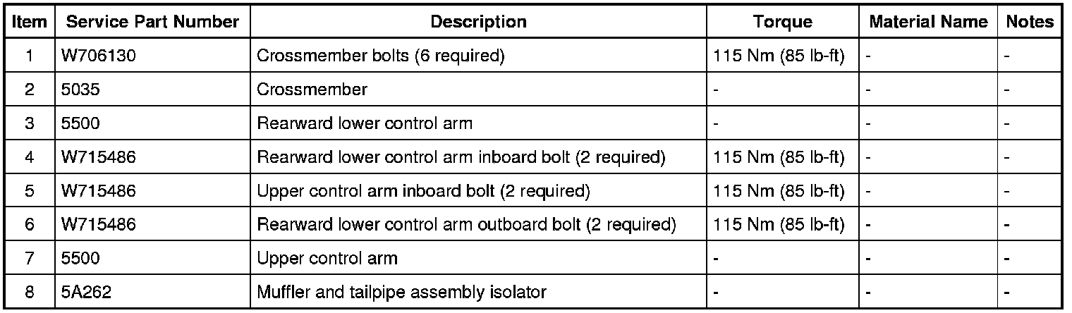 NOTICE: Suspension fasteners are critical parts that affect the performance of vital components and systems. Failure of these fasteners may result in major service expense. Use the same or equivalent parts if replacement is necessary. Do not use a replacement part of lesser quality or substitute design. Tighten fasteners as specified.