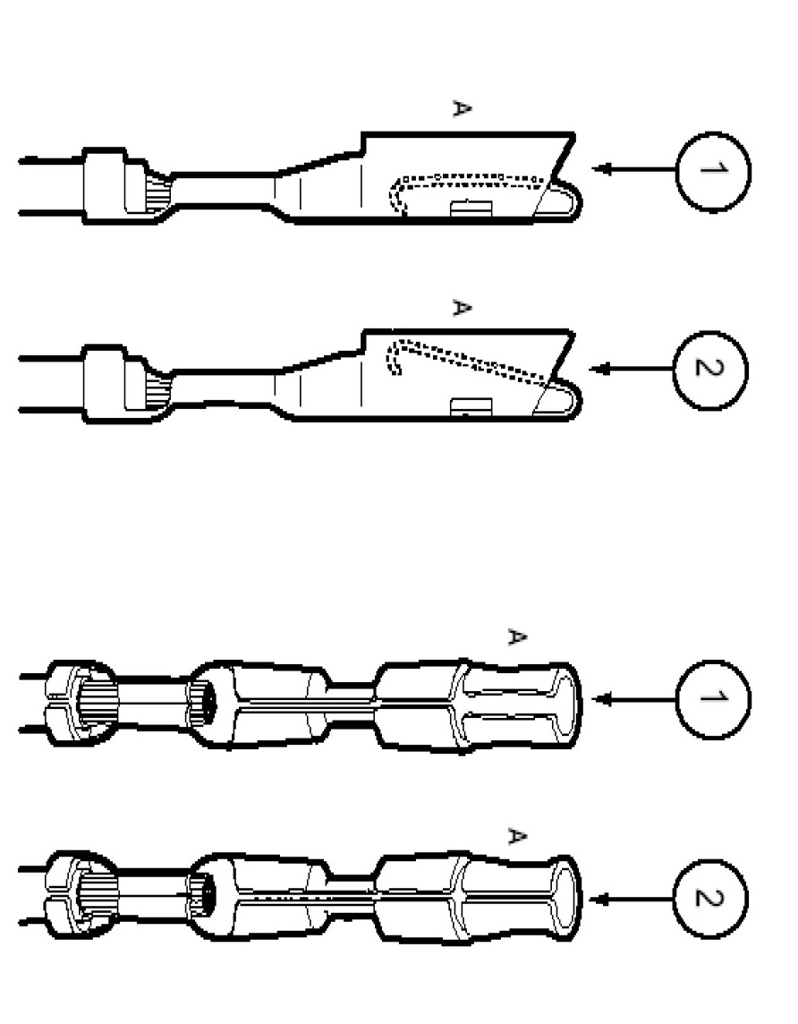 - Use heat shrinkable tubes marked with ES-1 (16-22 GA) or ES-2 (10-18 GA) to seat wire splice.