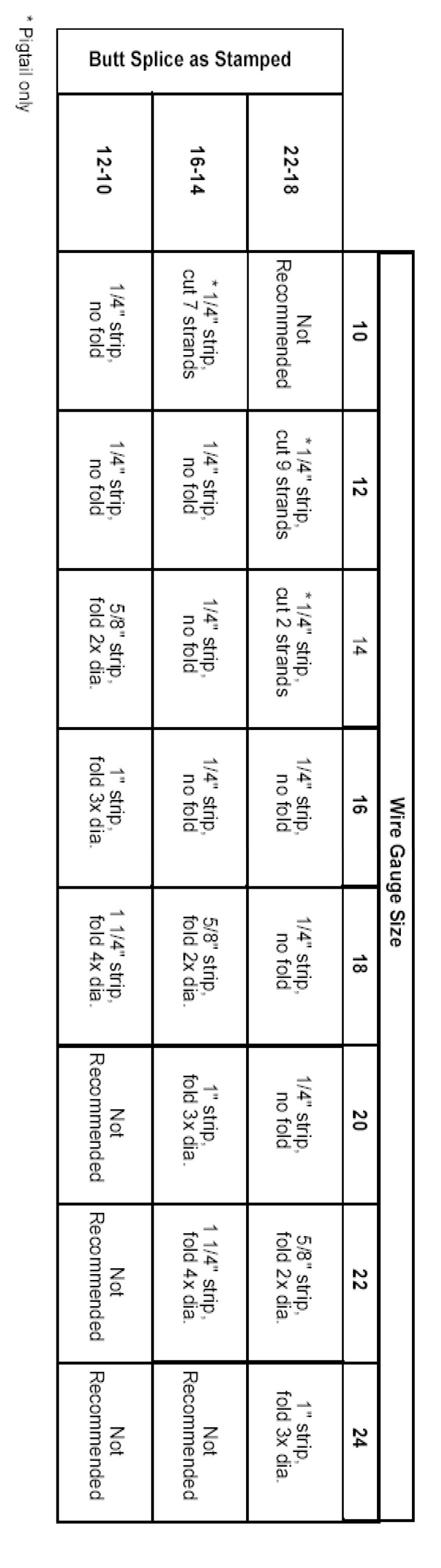 This chart is to be used when pigtails or terminals are of different wire gauge than the vehicle harness.