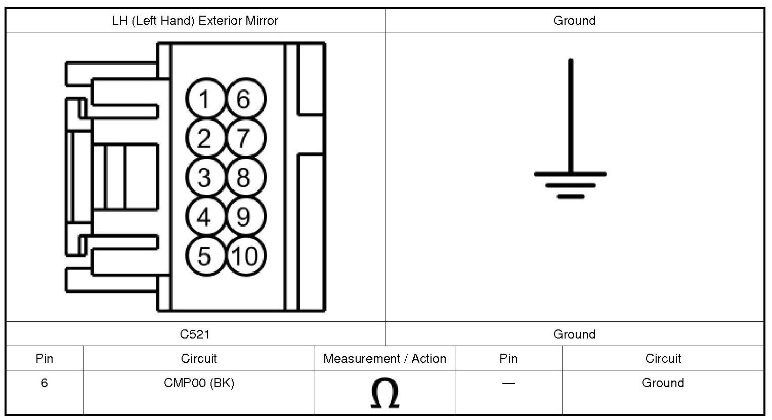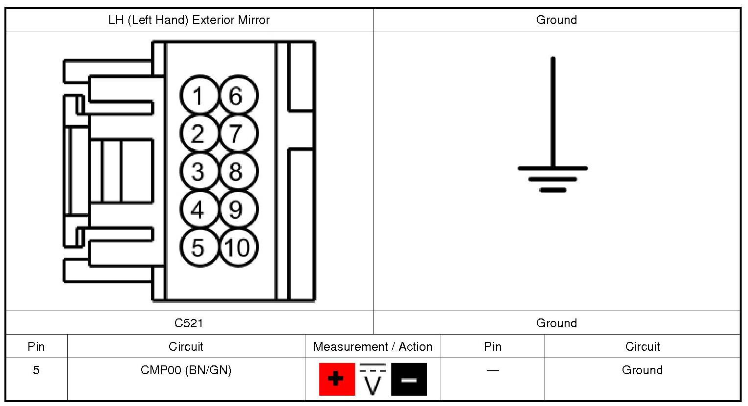 2. Disconnect: LH (Left Hand) Exterior Mirror C521.