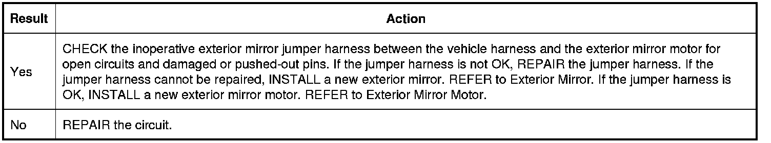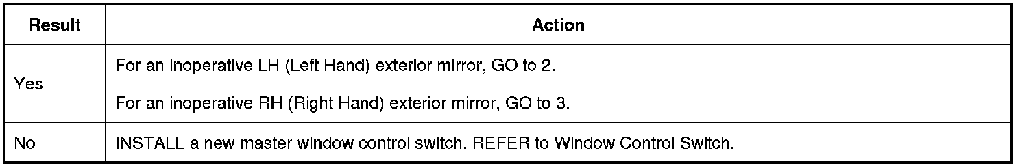 4. Carry out the Exterior Mirror Control Switch component test. REFER to Exterior Mirror Control Switch Testing and Inspection.