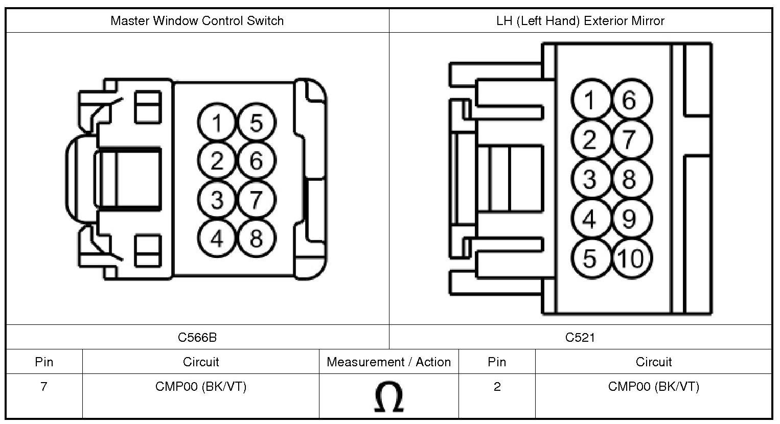 1. Disconnect: LH (Left Hand) Exterior Mirror C521.