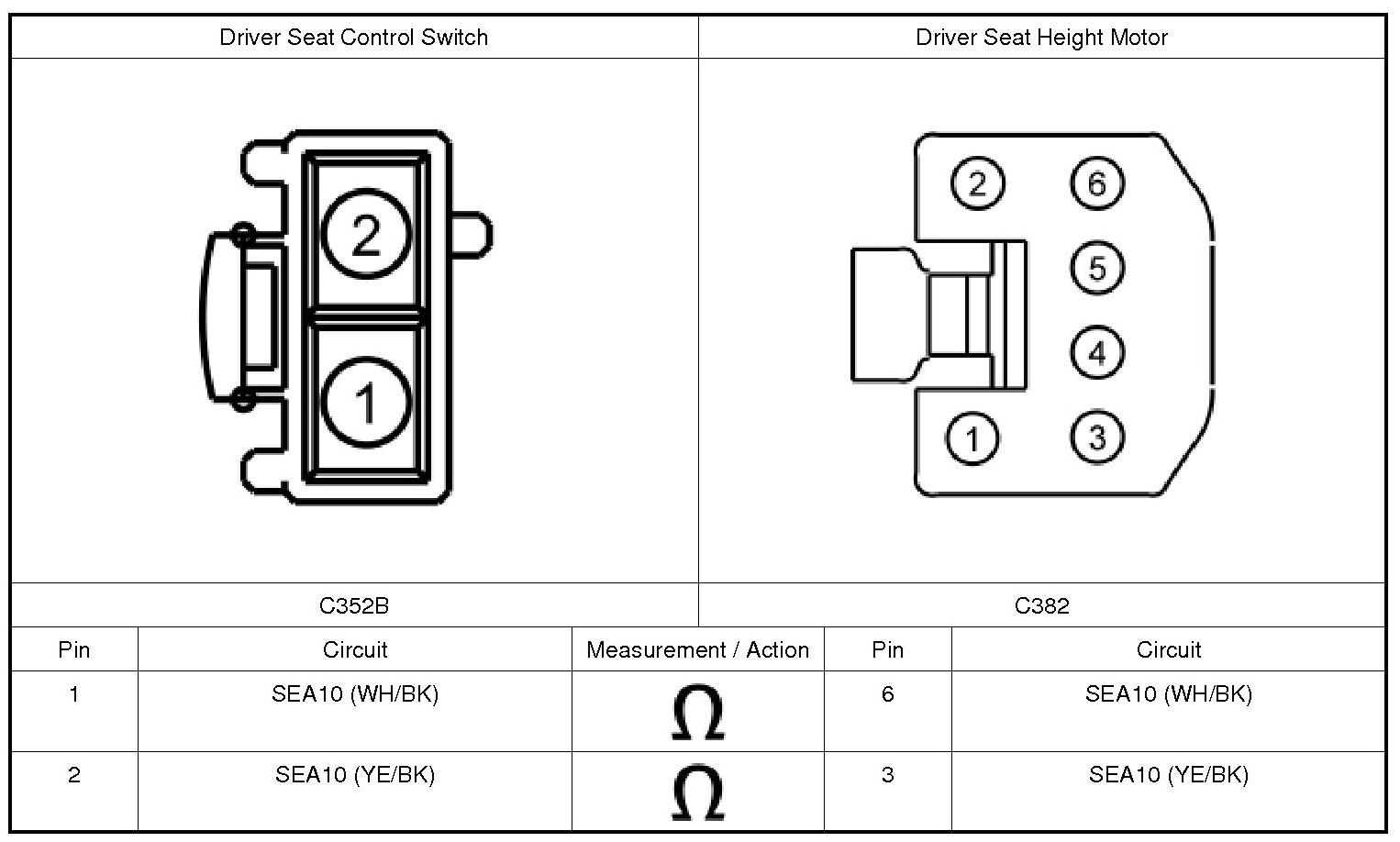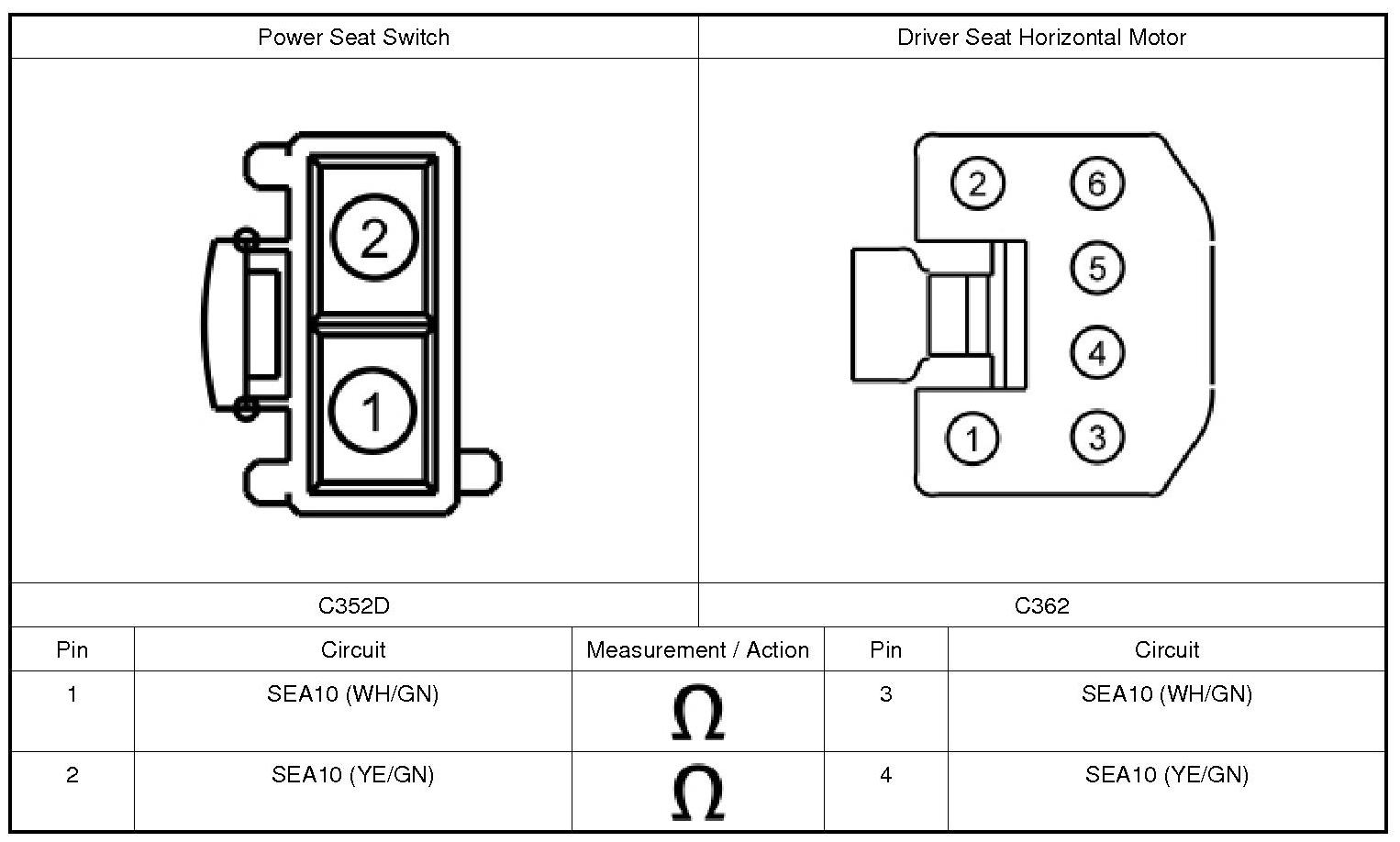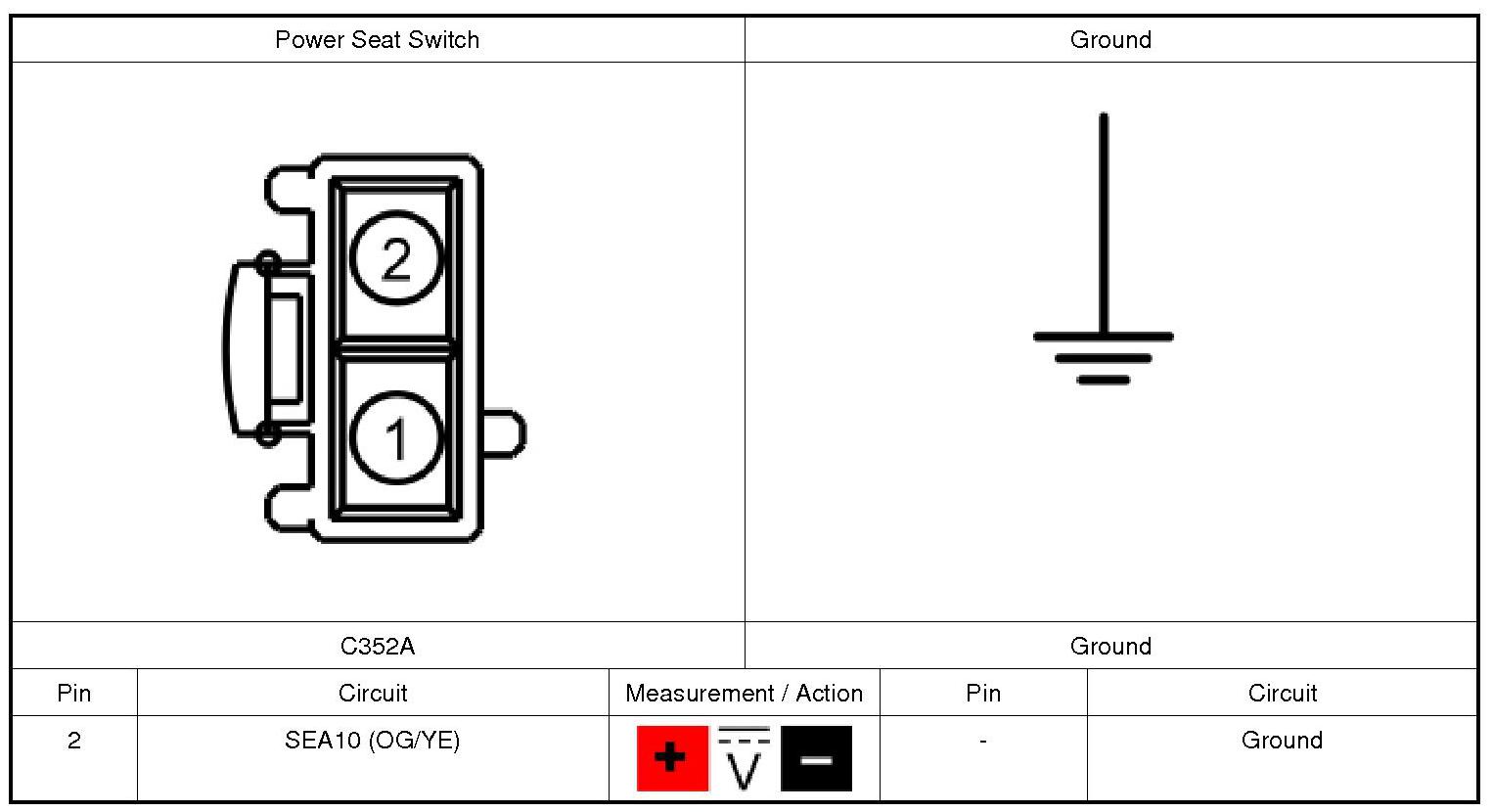 1. Disconnect: Power Seat Switch C352A.
