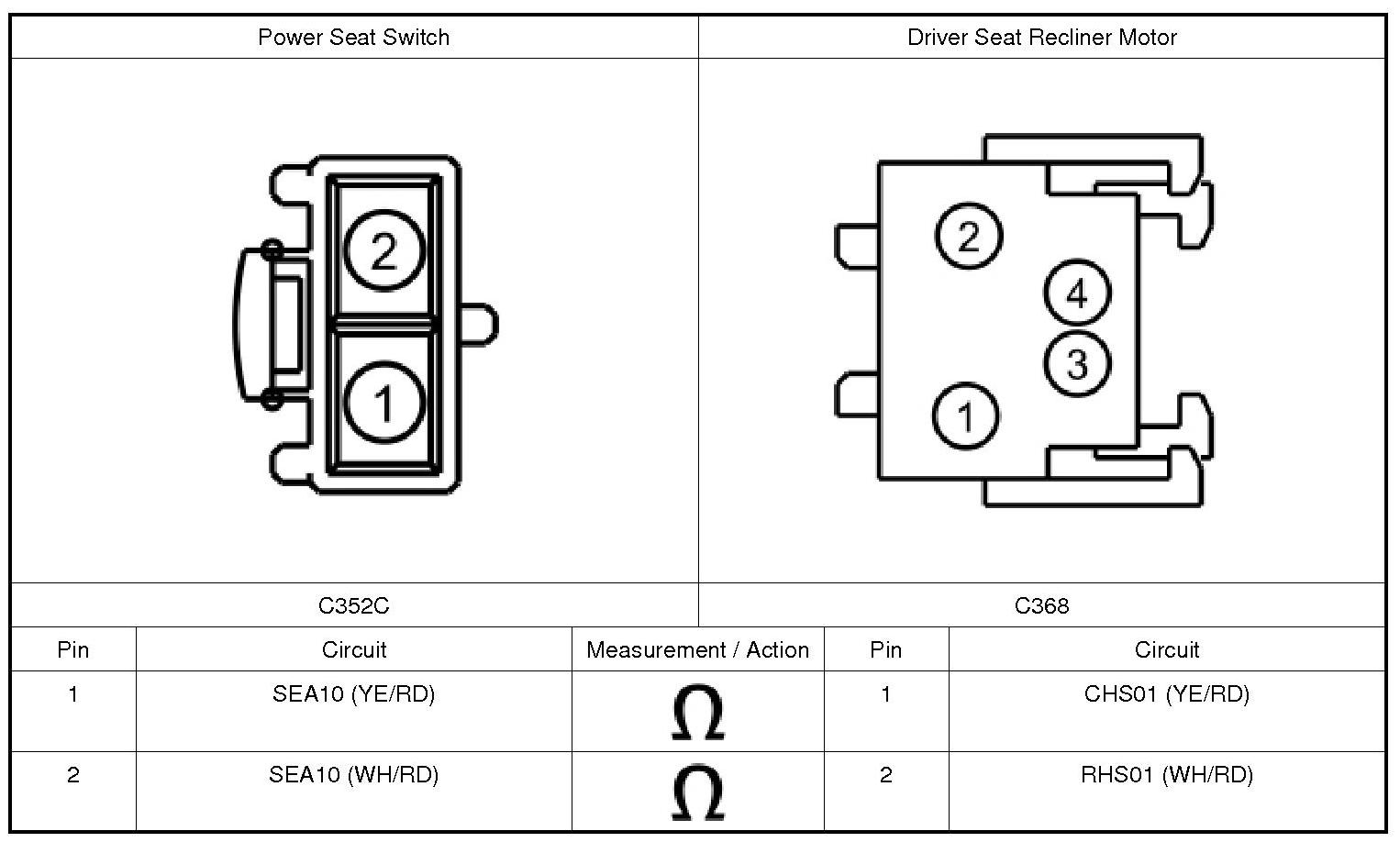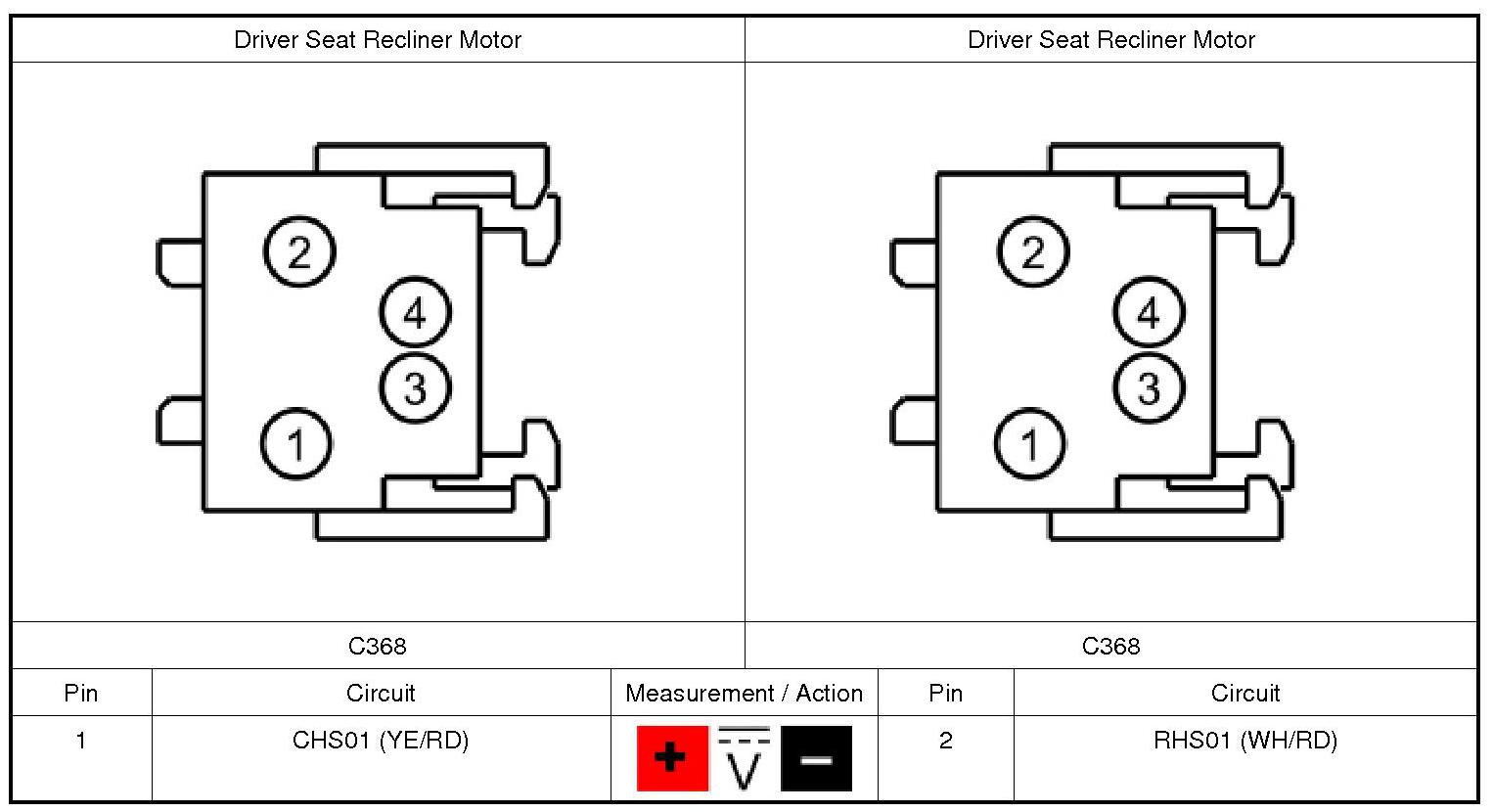 1. Disconnect: Driver Seat Recliner Motor C368.