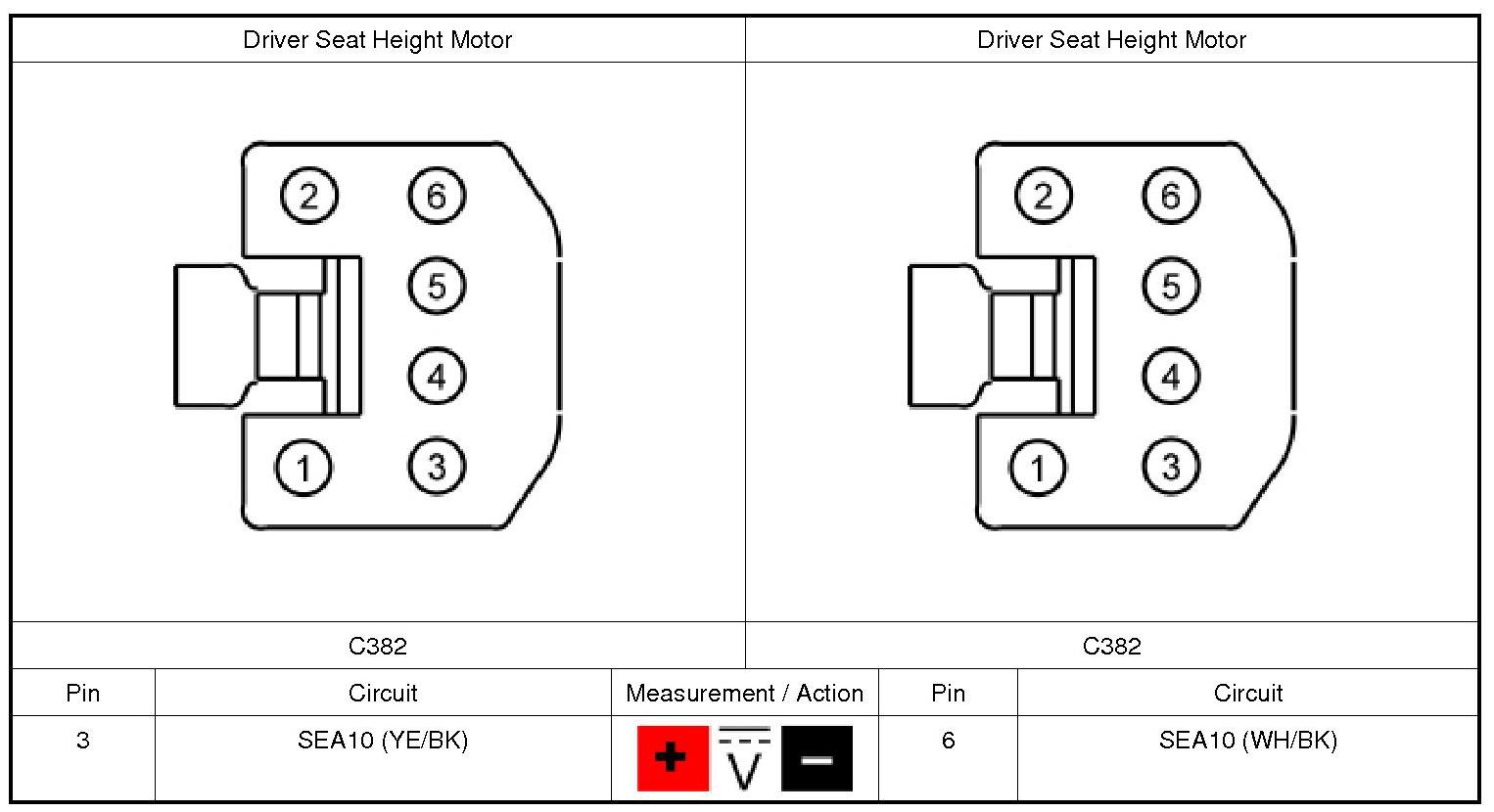 2. NOTE: The voltage being measured changes polarity dependent upon which direction the seat control switch is activated.